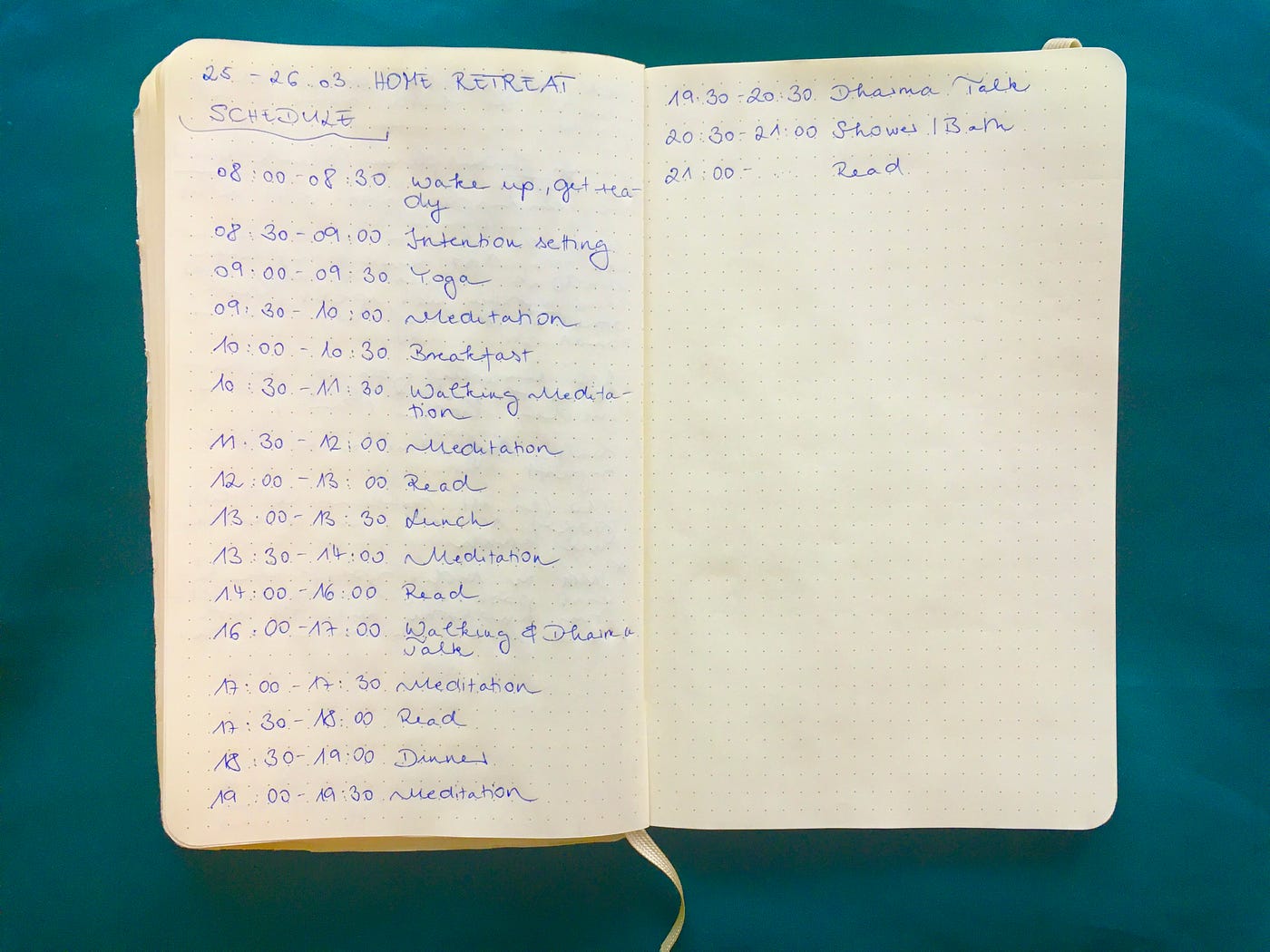 In the cease, what y'all desire is a schedule yous can pull through. I had no other expectations toward myself and my retreat than to stick to my well-thought-out schedule — to be answerable to myself.